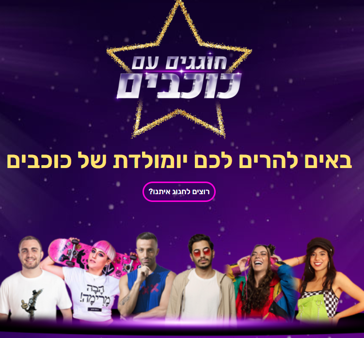 “חוגגים עם כוכבים” מביאה לקהל את האפשרות להזמין מעתה בצורה מוסדרת פעילויות ואירועי ימי הולדת עם כוכבי הרשת החזקים והמובילים בישראל. ביניהם שמות כמו לאון שניידרובסקי, שלי צירינג, רז ספני, שיינה, הגיימר מר שיבולת ועוד. האירועים מותאמים למנעד רחב של גילאים וישנם קונספטים שנבנו במיוחד עבור ימי ההולדת. תוכלו למצוא שם ימי הולדת סטייל טיקטוק עם כל הלהיטים הכי חמים והריקודים הויראליים, ימי הולדת גיימינג, עולמות של ולוגים, אתגרים הפעלות הומוריסטיות ועוד. רוצים להזמין? כל הפרטים כאן.